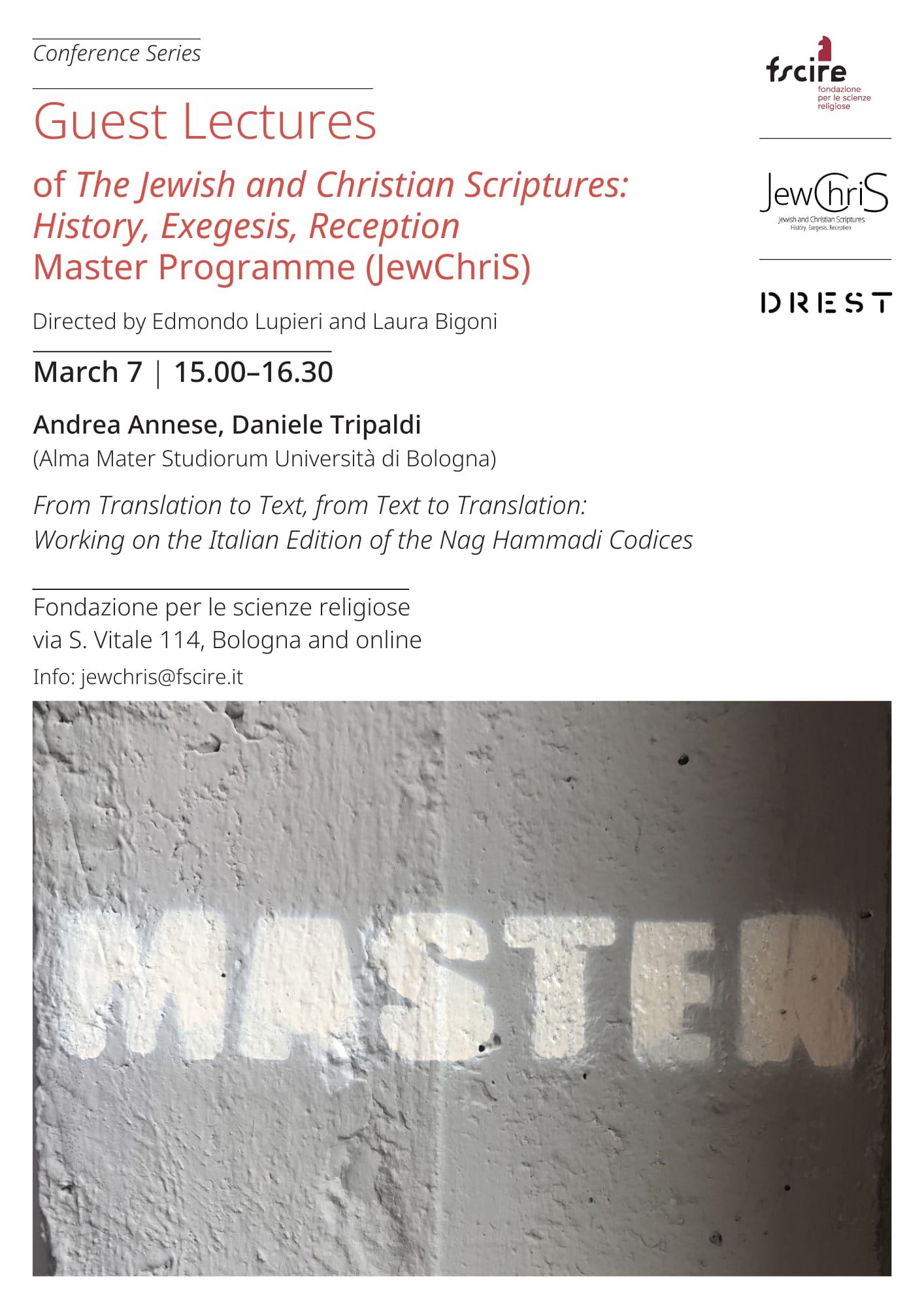 On Saturday 7 March 2026 the Fondazione per le scienze religiose will host the second Guest Lecture of the Master JewChris, the advanced programme that explores the historical formation of Jewish and Christian scriptures and the diversity of their exegetical traditions across centuries.