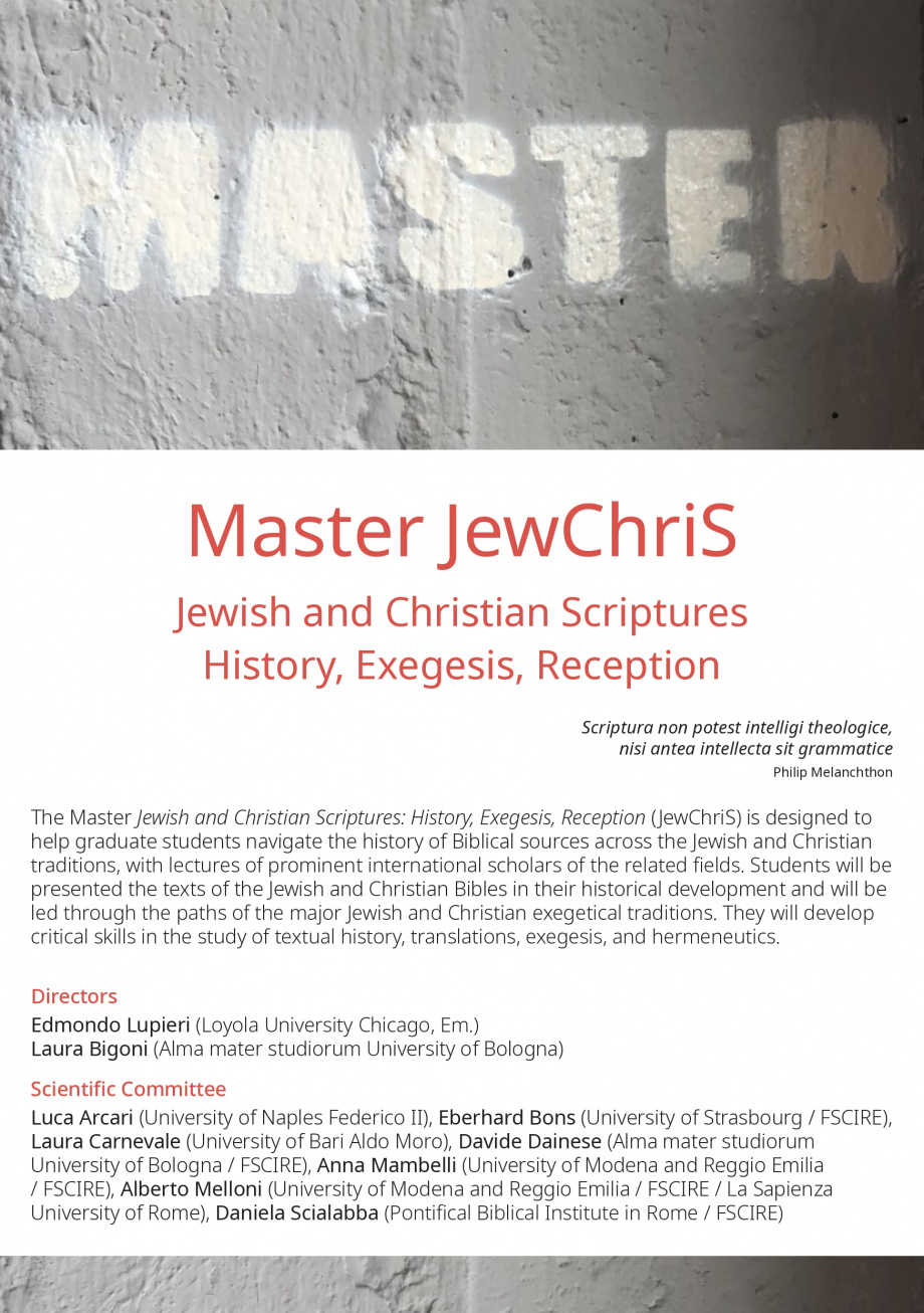 Sono aperte le iscrizioni alla prima edizione del nuovo Master JewChriS, il percorso di alta formazione promosso dalla Fondazione per le scienze religiose che offre una lettura critica dello sviluppo storico delle Scritture ebraiche e cristiane e delle loro molteplici tradizioni interpretative.