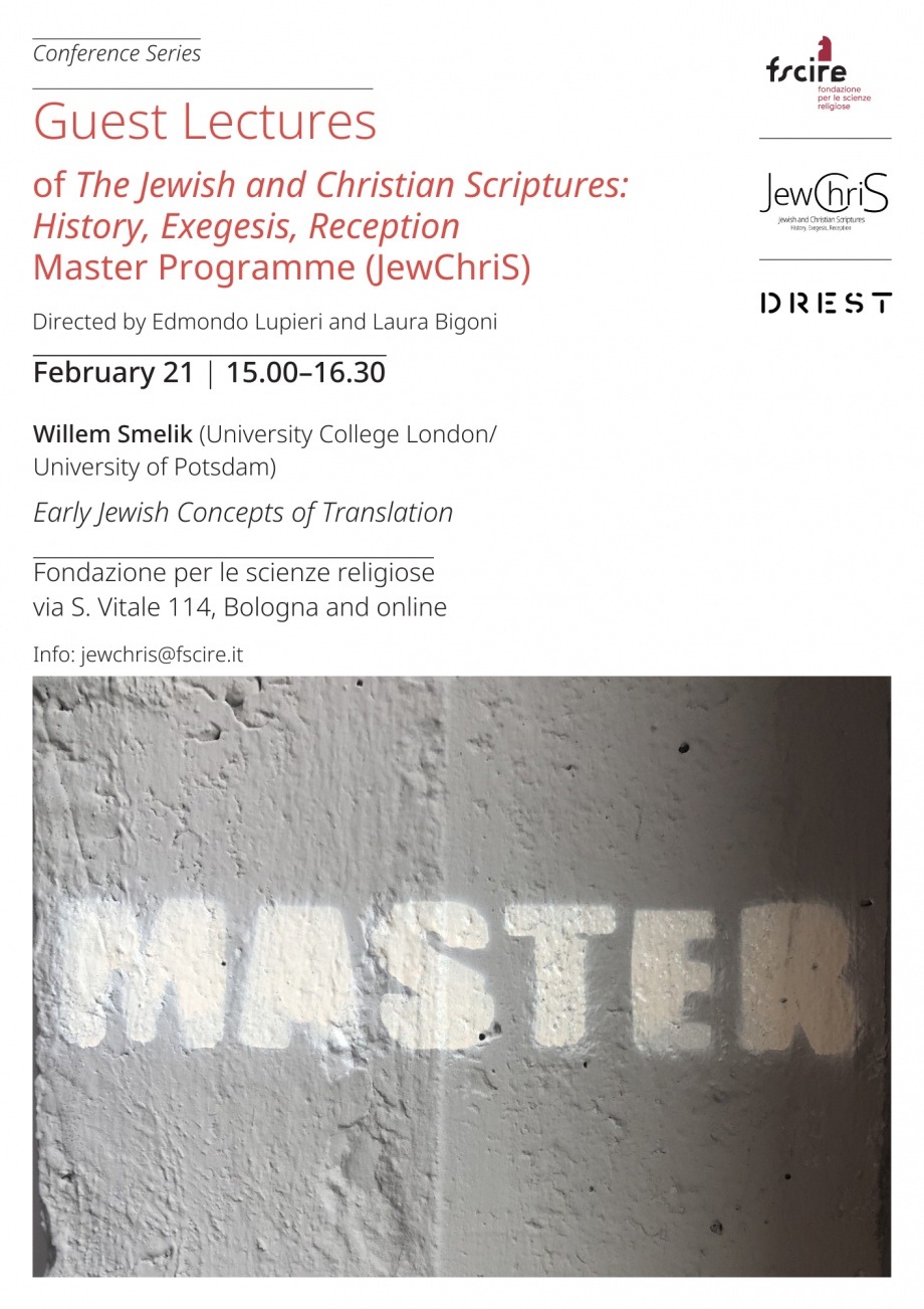 The opening lecture will be delivered by Willem Smelik (University College London/Universität Potsdam) with his contribution Early Jewish Concepts of Translation, which will take place in via S. Vitale 114 (Bologna) and online via Zoom from 3 pm to 4.30 pm (CET).